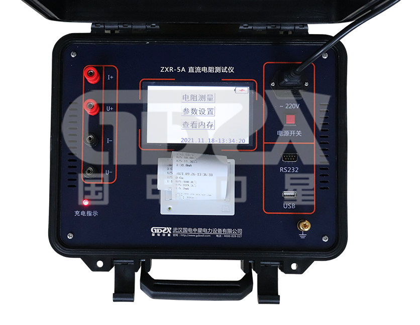 ZXR-5A直流電阻測試儀采用微機控制,大屏幕背光漢字液晶屏顯示,操作簡便、顯示清晰人機交互界面友好,測量過程及儀器工作狀態提示明確充分,不需操作人員記憶過多的規程;采用電流源線性補償技術,測試穩定、測量精度高、速度快,提高了測量效率,減輕了操作人員的工作強度。技術上采用“四端”測量,消除引線電阻與接觸引起的測量誤差。有過壓防護功能,能防反電動勢沖擊。面板式打印機可快速打印測量結果(選用)。體積小、重量輕、攜帶方便。