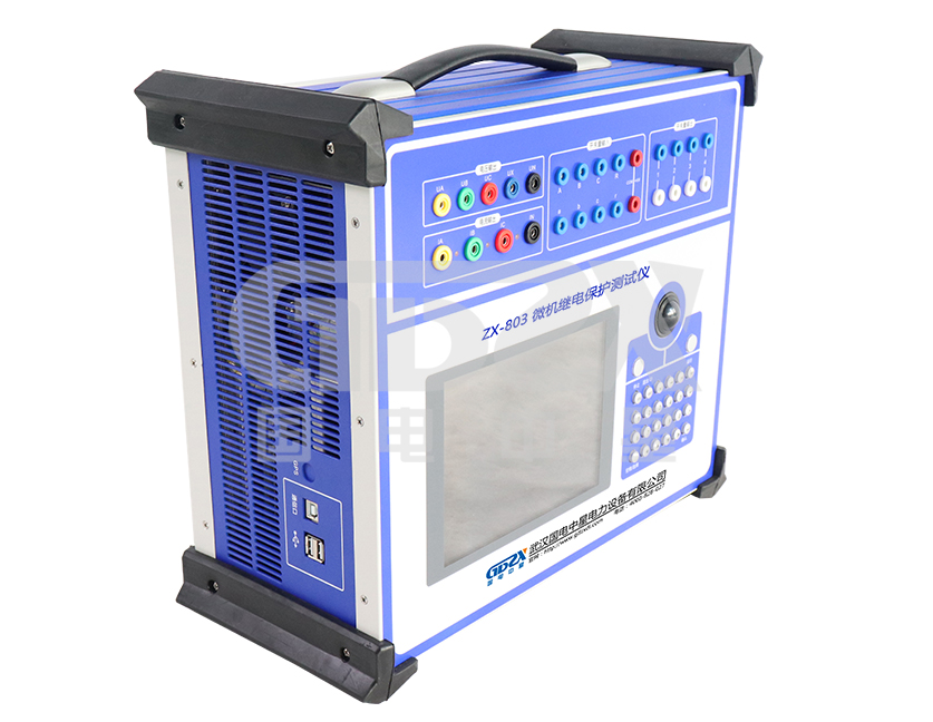 ZX-803三相繼電保護測試儀可對各種繼電器(如電流、電壓、反時限、功率方向、阻抗、差動、低周、同期、頻率、直流、中間、時間等)及微機保護進行檢定,并可模擬各種復雜的瞬時性和轉換性等故障進行整組試驗。